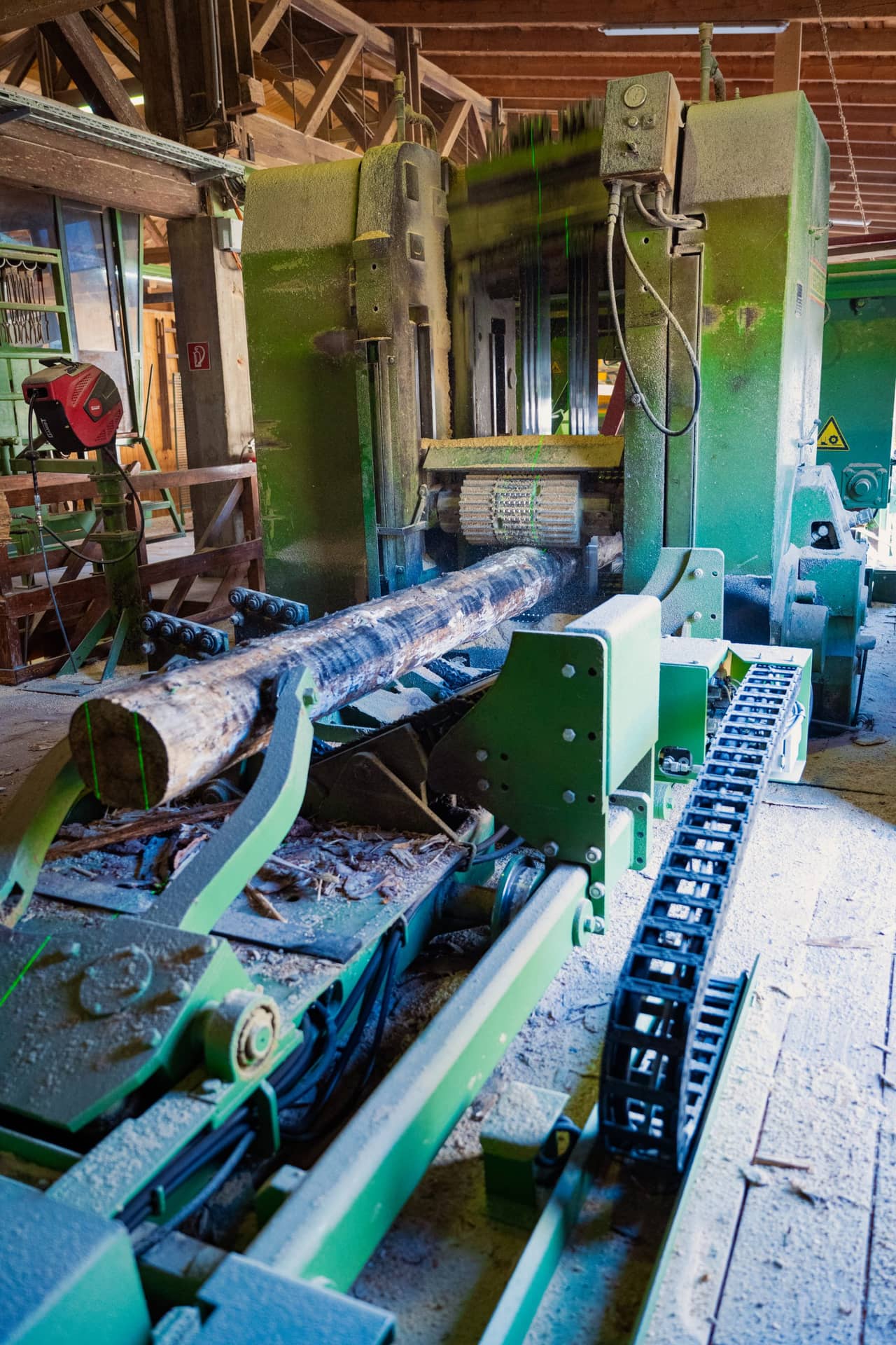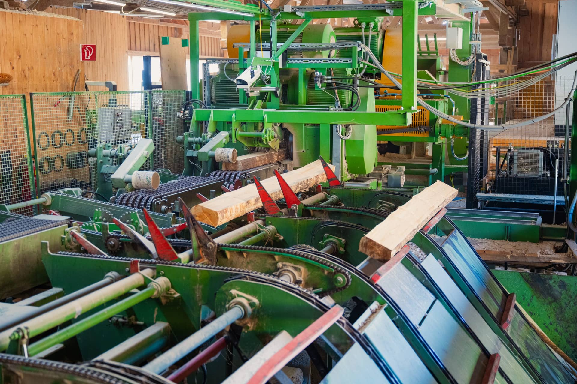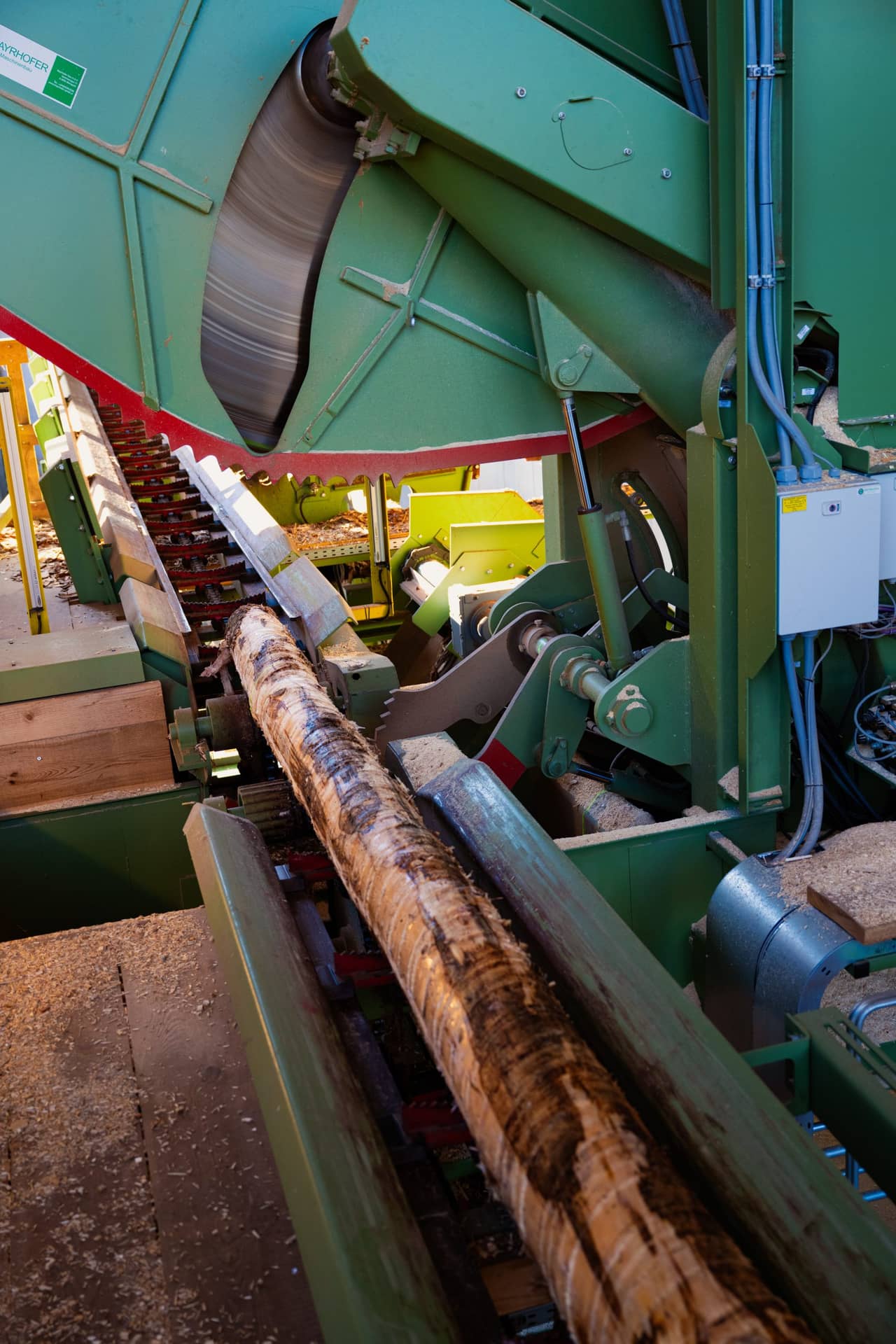 Der Einschnitt im Sägewerk erfolgt von 3 – 10 m Länge mittels Gatter und Kreissägen-Technologie.