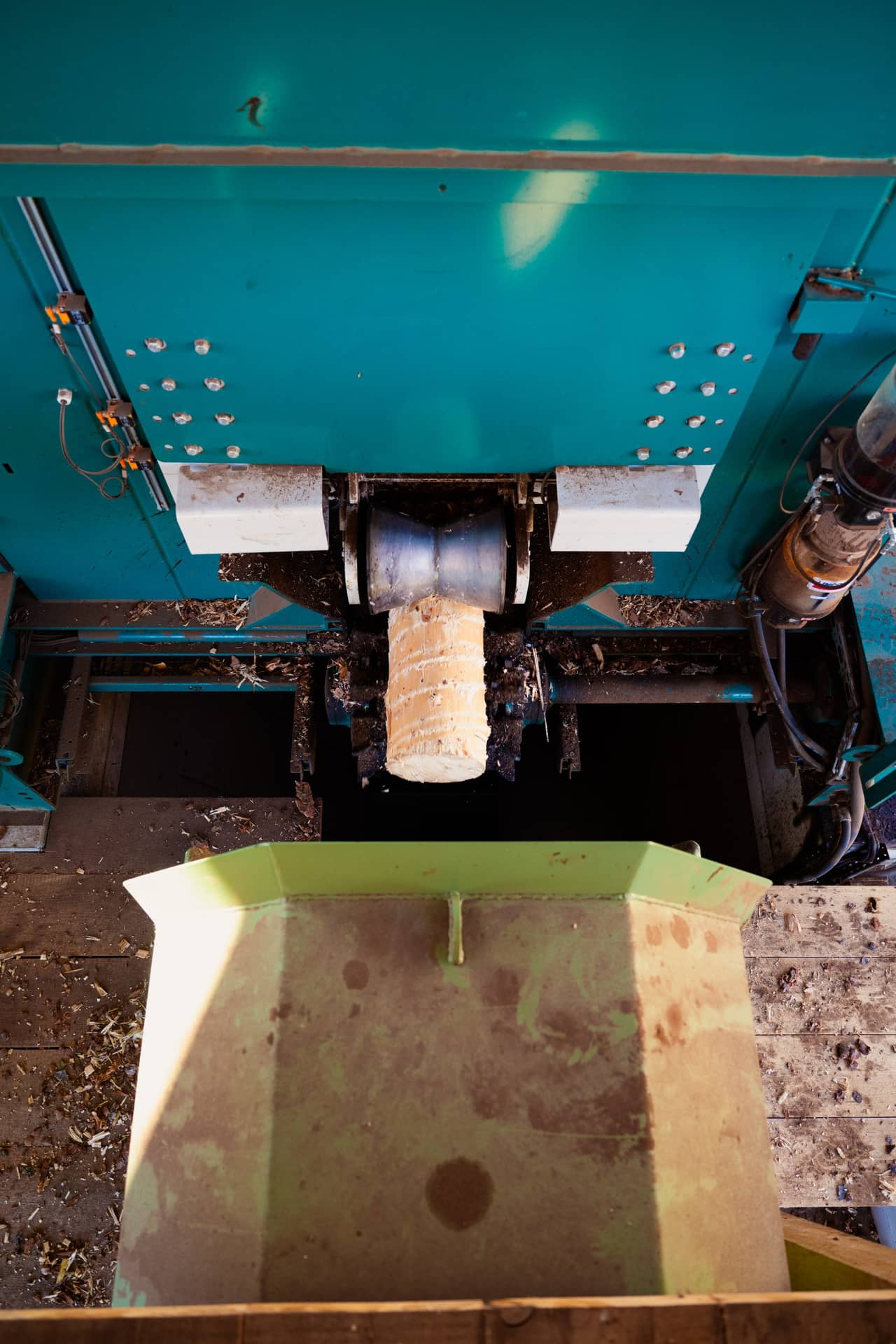 Rundholz mit Metallteilen wird als Splitterholz ausgeworfen.